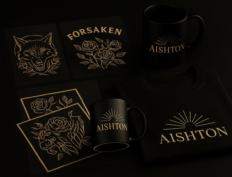 Exclusive designs available as UV DTF & DTF transfers.Create your own luxury apparel, mugs & more.